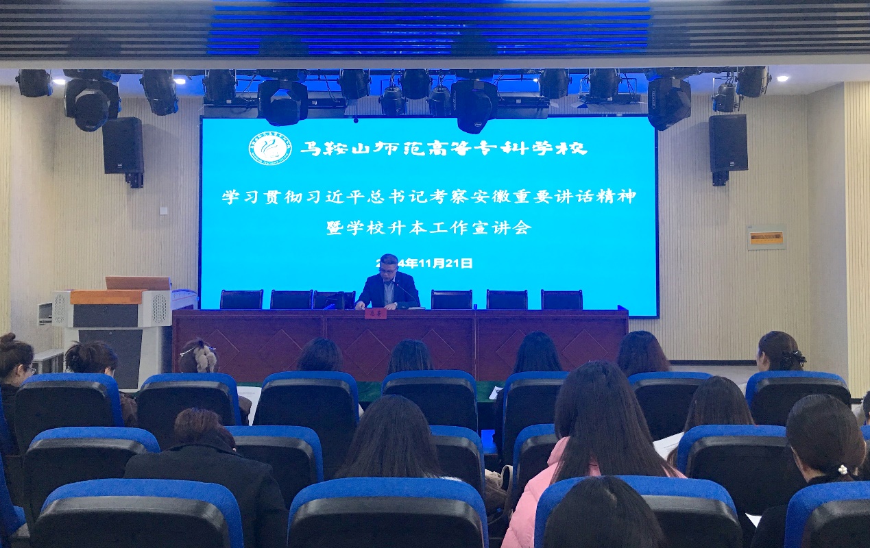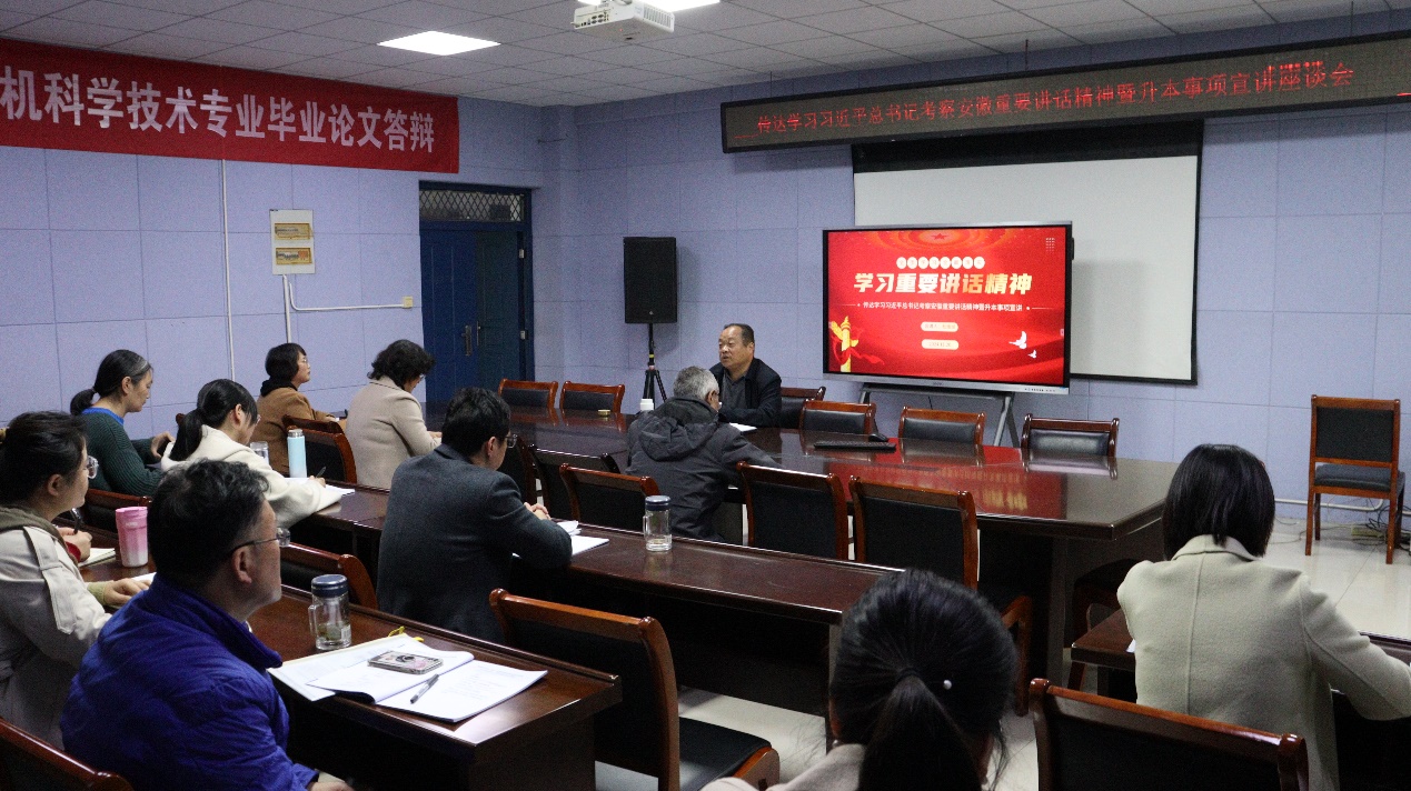 宣讲同志围绕充分认识习近平总书记考察安徽重要讲话的重大意义、深刻领会习近平总书记考察安徽重要讲话精神的丰富内涵、切实推动习近平总书记考察安徽重要讲话精神落地生根三个方面,作了阐述和解读。参会人员表示,习近平总书记考察安徽重要讲话具有极强的时代感召力、思想引领力和实践穿透力,是巨大的精神鼓舞和激励鞭策。大家一致认为,必须自觉做“两个确立 ”的坚决拥护者和“两个维护 ”的坚定践行者,自觉用习近平总书记重要讲话精神统一思想、意志和行动,坚定不移沿着总书记指引的方向前进。要立足岗位、奋发作为,把总书记的亲切关怀、殷切嘱托转化为学校高质量发展和升本工作生动实践和强大动力。
