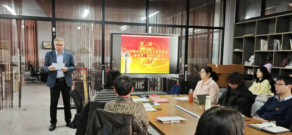 宣誓仪式结束后,全体新老党员共同聆听了第二支部书记王白鸽讲授的党课“实施新时代立德树人工程,培养担当民族复兴大任的时代新人”。(图文/王越 校审/王昀 审核/吴德琴)