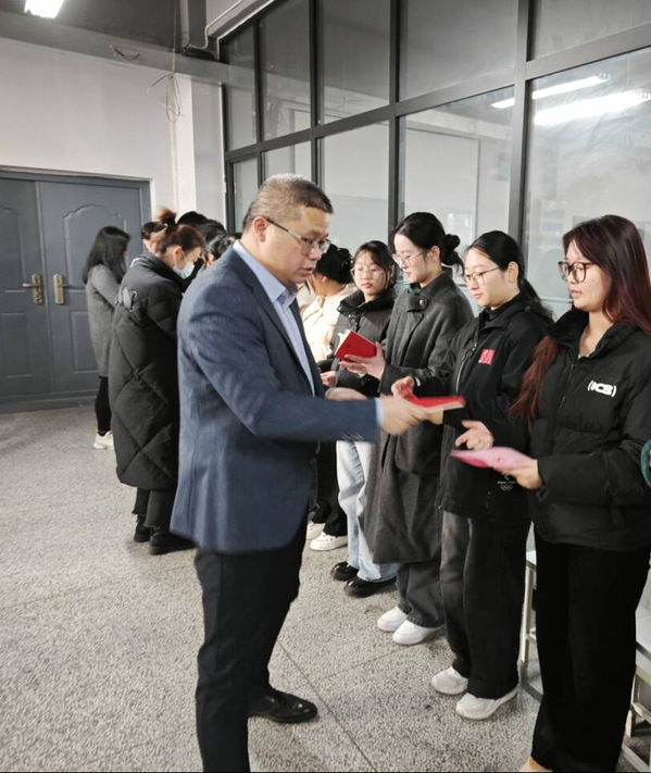栗亮代表校党委致辞。在向新党员们表示祝贺的同时,他也提出了殷切得期望。希望他们在今后的学习生活中,以党员的标准严格要求自己,筑牢信仰之基,做理想信念的坚守者;锤炼过硬本领,做求知路上的奋进者;勇于担当作为,做时代发展的开拓者。