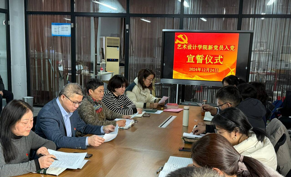 宣誓结束后,栗亮和艺术设计学院党总支委员为新党员佩戴了党徽,发放了《党章》及入党通知书。
