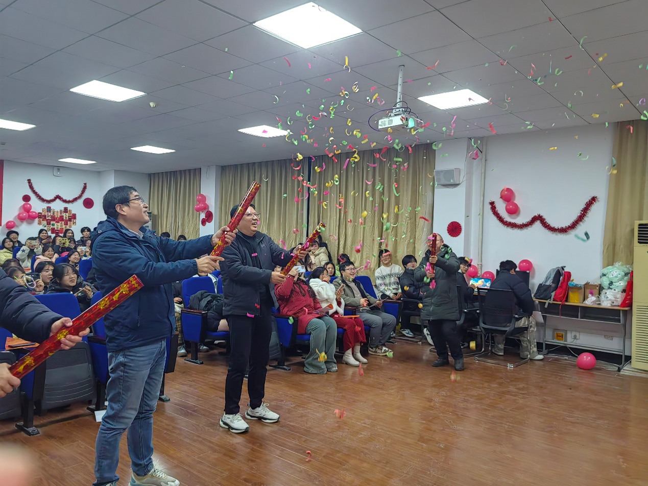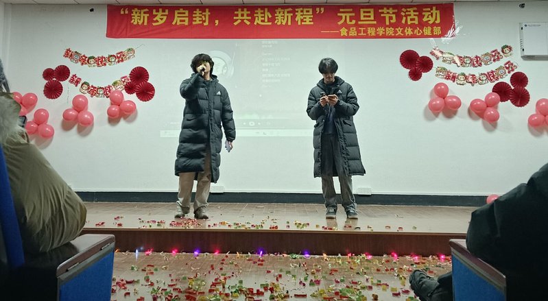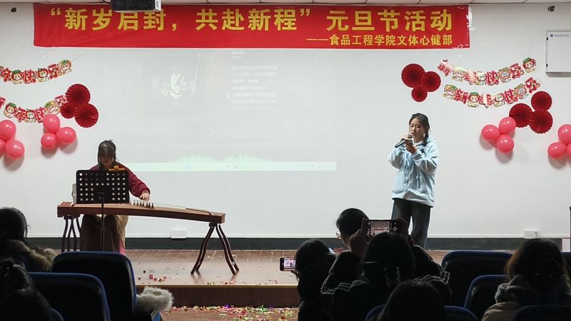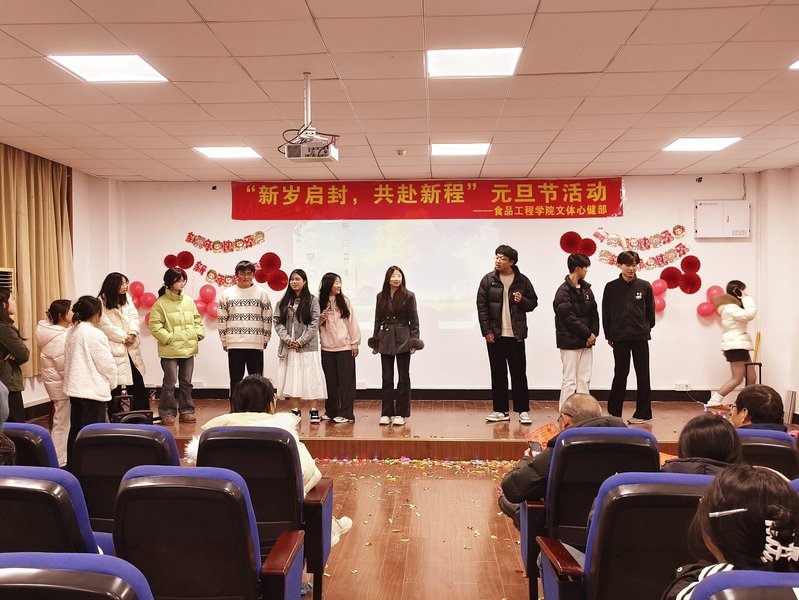 12月27日晚,食品工程学院2025年学生元旦晚会在格致楼五楼会议厅举办。校党委委员、组织人事处处长全立荣、食品工程学院院长秦东方、党总支书记张世安及部分教师到现场观看晚会。