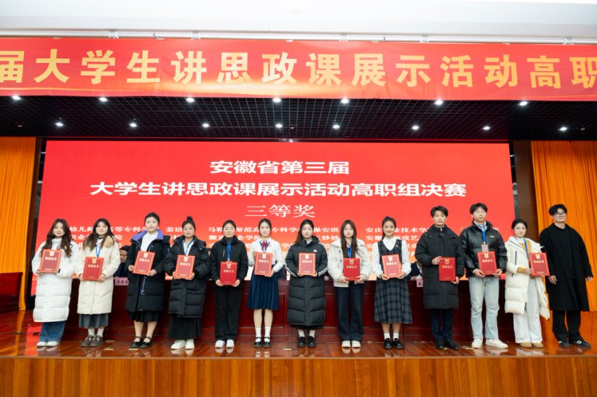 2024年12月27日,安徽省第三届大学生讲思政课高职组决赛结果揭晓,马鞍山师范高等专科学校学前教育专业 2020 级五年制学前教育专业 4 班的操安琪同学表现出色,荣获高职组三等奖。此前,在皖南片区赛中,操安琪同学围绕《习近平新时代中国特色社会主义思想概论》课程的相关章节、朱玉洁同学围绕《形势与政策》课程的相关内容,结合社会时事热点和自身学习体会,进行了生动而深刻的讲解。她们以独特的视角、真挚的情感和流畅的表达获得认可,最终操安琪同学荣获皖南片区赛高职组二等奖、朱玉洁同学荣获皖南片区赛高职组三等奖。