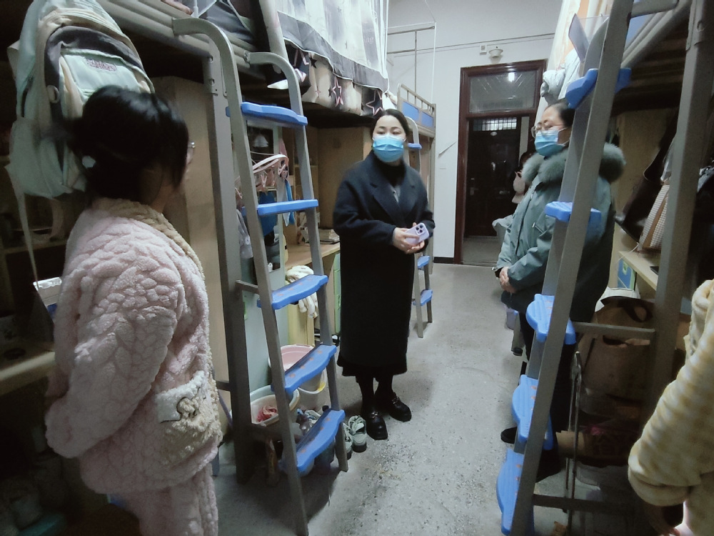 在走访过程中,学院领导、辅导员们与刚刚返校的学生们进行了亲切交谈,并详细询问了新转入学生、新调整宿舍学生们的适应情况,其中一些新转入的学生谈到,新专业课程内容丰富且具有挑战性,他们会努力跟上学习进度,也会积极融入新的大家庭。刘明娟耐心倾听了大家的想法,一些问题现场进行了处理,她还提醒大家要合理安排时间,保持良好的作息习惯,以饱满的精神状态投入到新学期的学习和生活中去,不负春光、不负自己。