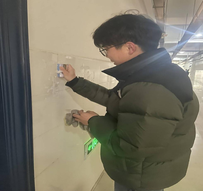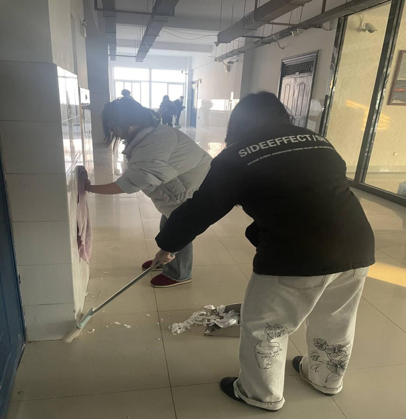 活动当天,入党积极分子来到教学楼行知楼下,迅速投入到清洁工作中。大家分工明确,配合默契,有的负责清扫楼梯和走廊的垃圾,有的仔细铲除墙面和门上的纸屑,大家干劲十足,充分展现了不怕脏、不怕累的奉献精神。经过几个小时的辛勤劳动,教学楼的面貌焕然一新,为师生们创造了更加整洁、温馨的学习和工作环境。