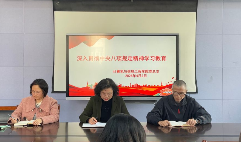 4月2日,计算机与信息工程学院召开党总支党员大会暨教职工政治理论学习会,传达学习习近平总书记关于深入贯彻中央八项规定精神学习教育的重要讲话和重要指示精神,习近平总书记关于加强党的作风建设的重要论述,中央、省委、市委党的建设工作领导小组会议精神。学院党总支书记王莉娟、院长鲁兵、副院长杜丹以及全体教职工参加会议。
