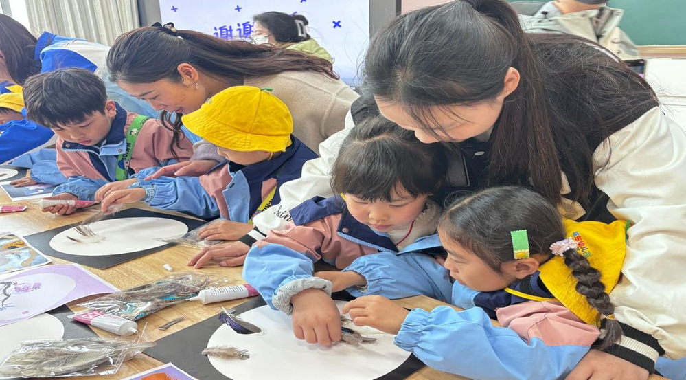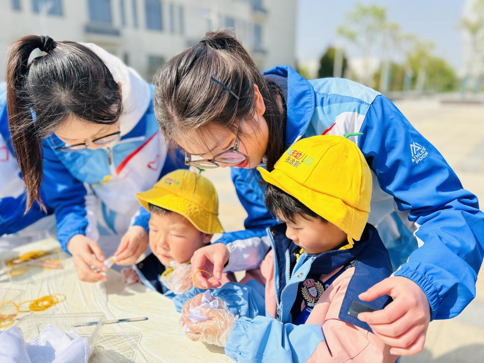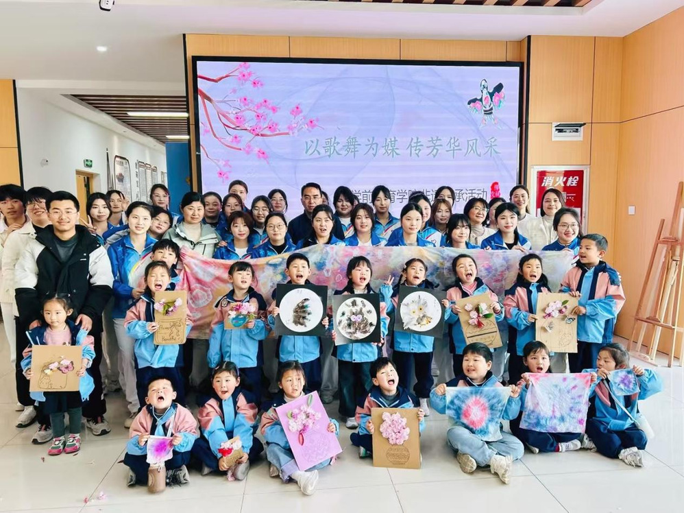 为持续贯彻落实“党建引领往前赶”专项行动方案,2025年4月2日,春日融融,学前教育学院联合学校附属城东幼儿园开展“‘童趣’探春 ‘童行’非遗”主题春游及非遗传承活动,组织城东幼儿园70余名幼儿走进学校滨江校区,拓展视野,亲近大自然。本次活动以非遗文化传承为核心,通过扎染、羽毛画等传统工艺体验,让幼儿感受非遗魅力的同时,也在心中种下艺术的种子。