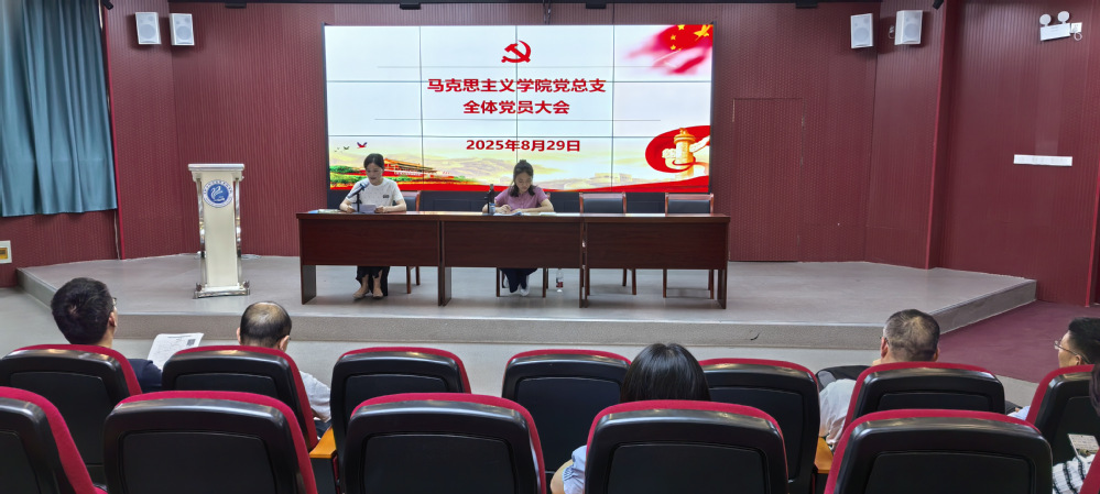 2025年8月29日上午,马克思主义学院党总支在红星影院召开全体党员大会。会议由党总支书记韩芳勤主持。