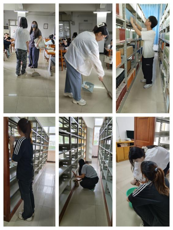 参与学生分为四个工作小组,分别负责一楼书库二、二楼阅览室、二楼书库三、三楼书库四的清理整理工作。活动中,师生们发扬不怕苦、不怕累的精神,对书架、阅览桌椅、地面等进行全方位清洁。特别是针对书架高处积尘、图书分类摆放等细节问题,师生们展现出精益求精的工作态度,获得图书馆工作教师的高度认可。