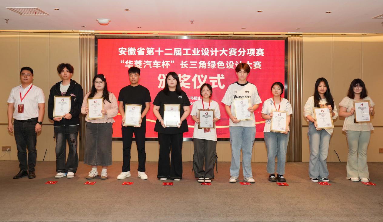 上午10时,安徽省第十二届工业设计大赛“华菱汽车杯”长三角绿色设计大赛颁奖典礼在雨山湖饭店隆重举行。 据悉,该赛事参赛选手是来自全国三十余所高校的本科生、专科生,教师及专业设计从业人员,我校23级环境艺术设计和室内艺术设计班的学子凭借出色的专业设计能力,从近六百件作品中脱颖而出,揽括了一二三等奖!随后,马萍萍作为“优秀指导老师”上台领奖,马鞍山师专也获得了“优秀组织奖”。