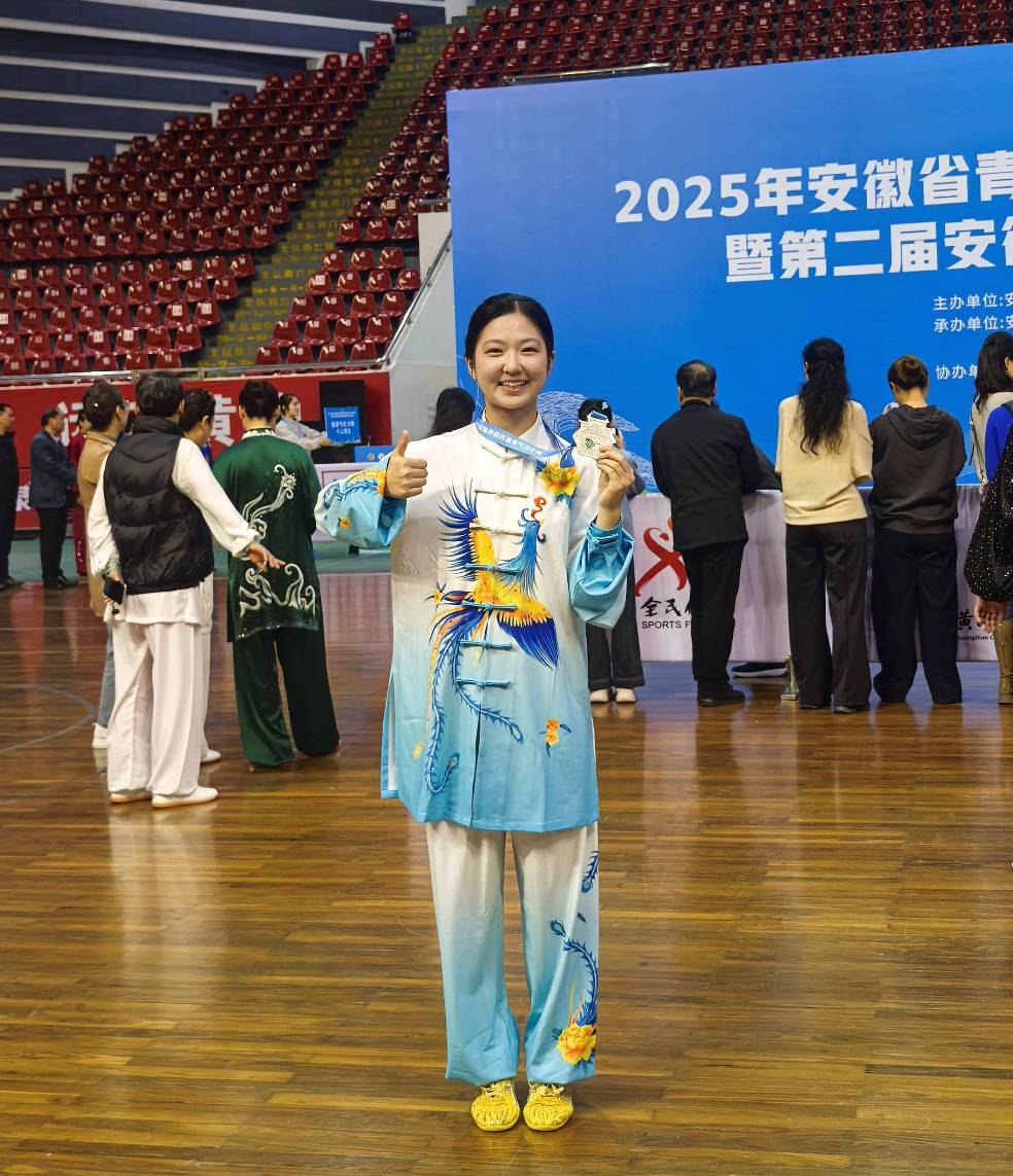 本次比赛,学校学生代表队和教职工代表队首次组队参赛,分别参加了八段锦、五禽戏的集体赛和个人赛。两天激烈的角逐,学校运动员不甘落后、稳扎稳打。最终来自外国语学院2024级小学英语教育专业学生吴怡在乙组八段锦个人赛中,凭借超强的心理素质和过硬的实力摘获一等奖的好成绩。