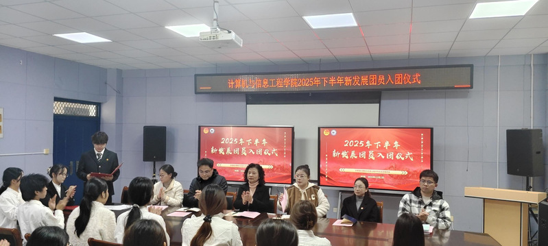 为深化共青团思想引领,厚植青年团员的家国情怀与奋斗精神,引领青年学子勇担时代使命,书写青春华章。12月1日,计算机与信息工程学院举办2025年下半年新发展团员入团仪式,学院党总支书记王莉娟、党总支副书记曾甜、团总支书记李顺顺、全体辅导员老师及新老团员共同见证这一庄严时刻,仪式由院学生会组宣部鲍博琪主持。
