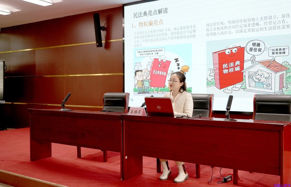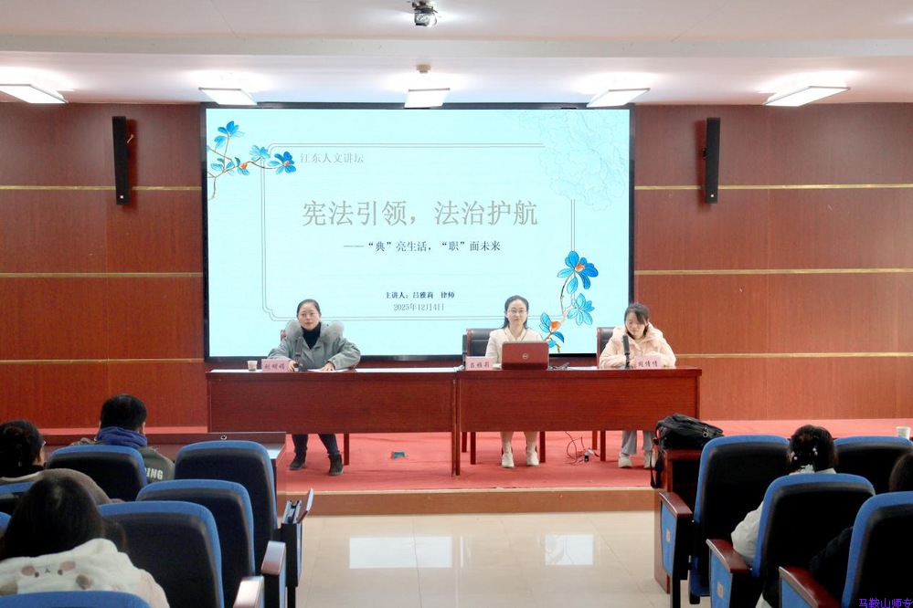 为深入学习贯彻习近平法治思想,扎实推进全面依法治国实践,迎接第12个国家宪法日,12月4日,由马鞍山市社科联主办、马鞍山师范高等专科学校社科联承办的“江东人文讲坛”法治主题宣讲在学术报告厅开讲。北京盈科(马鞍山)律师事务所律师吕雅莉受邀作题为《宪法引领,法治护航——“典”亮生活,“职”面未来》的专题辅导报告。