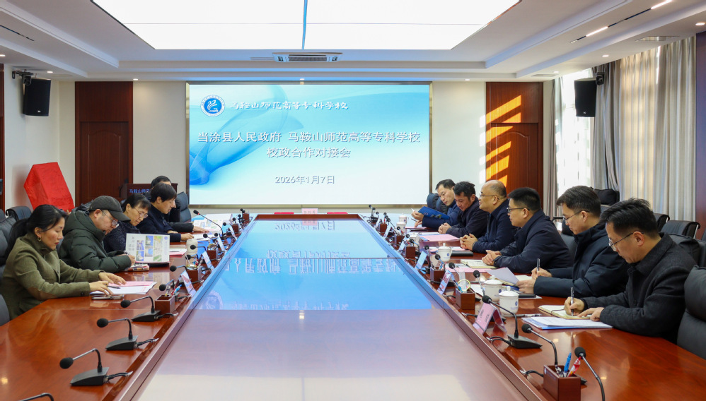 1月7日,马鞍山师范高等专科学校与当涂县人民政府校政合作对接会召开,校企双方共同探讨合作新路径,深化产教融合,携手推动区域经济社会高质量发展。党委副书记、校长刘淑凤,当涂县委副书记、县长王文出席会议并讲话。校党委委员、副校长李胜主持。