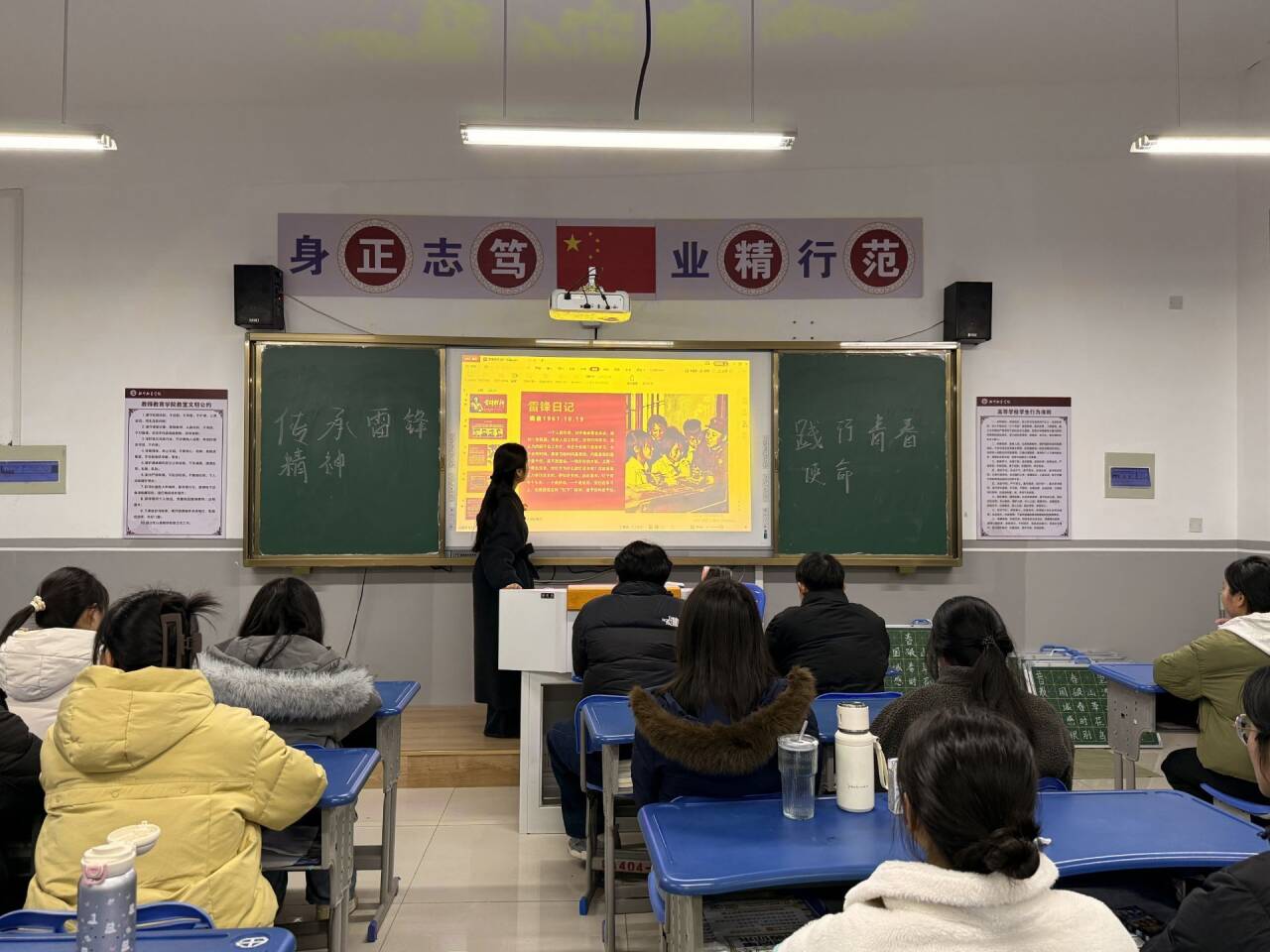 活动期间,各班围绕“雷锋精神”主题,通过观影、故事分享等形式,共同学习雷锋精神的内涵与意义。25级音乐教育1班以讲述雷锋故事的方式,带领同学们了解雷锋同志的生平事迹,深刻领悟雷锋精神的内涵;24级美术教育班则通过感人的视频与深入的讲解,回顾雷锋平凡而伟大的一生,帮助同学们明晰雷锋精神的意义,培养正直、善良的道德品质。