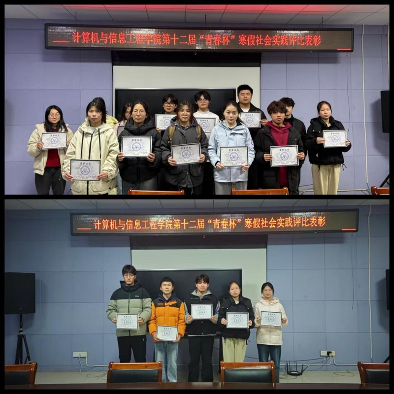 根据校团委工作部署,计算机与信息工程学院学子于2026年寒假期间深入基层、服务家乡,围绕公益服务、基层实践、社区治理、春运保障等领域积极开展实践活动。为表彰先进、树立典型,3月18日,学院召开寒假社会实践总结表彰会议,对在实践过程中涌现的先进集体及个人进行表彰。