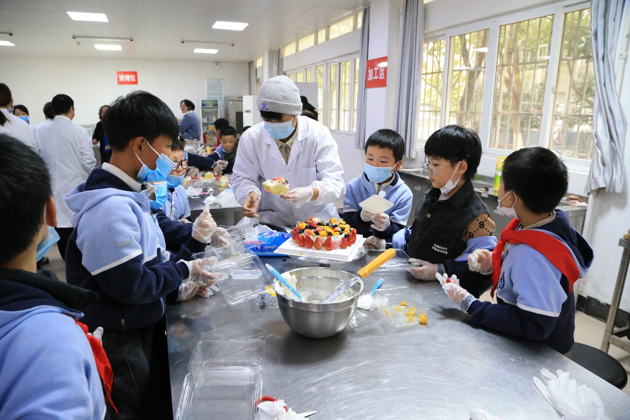 在食品加工实训室,老师们精心安排了蛋糕制作项目,为在近期过生日的孩子们庆祝生日,在老师和志愿者的帮助下,他们亲自参与制作蛋糕,亲身体会食品制作的奇妙过程,感受劳动的价值和快乐。