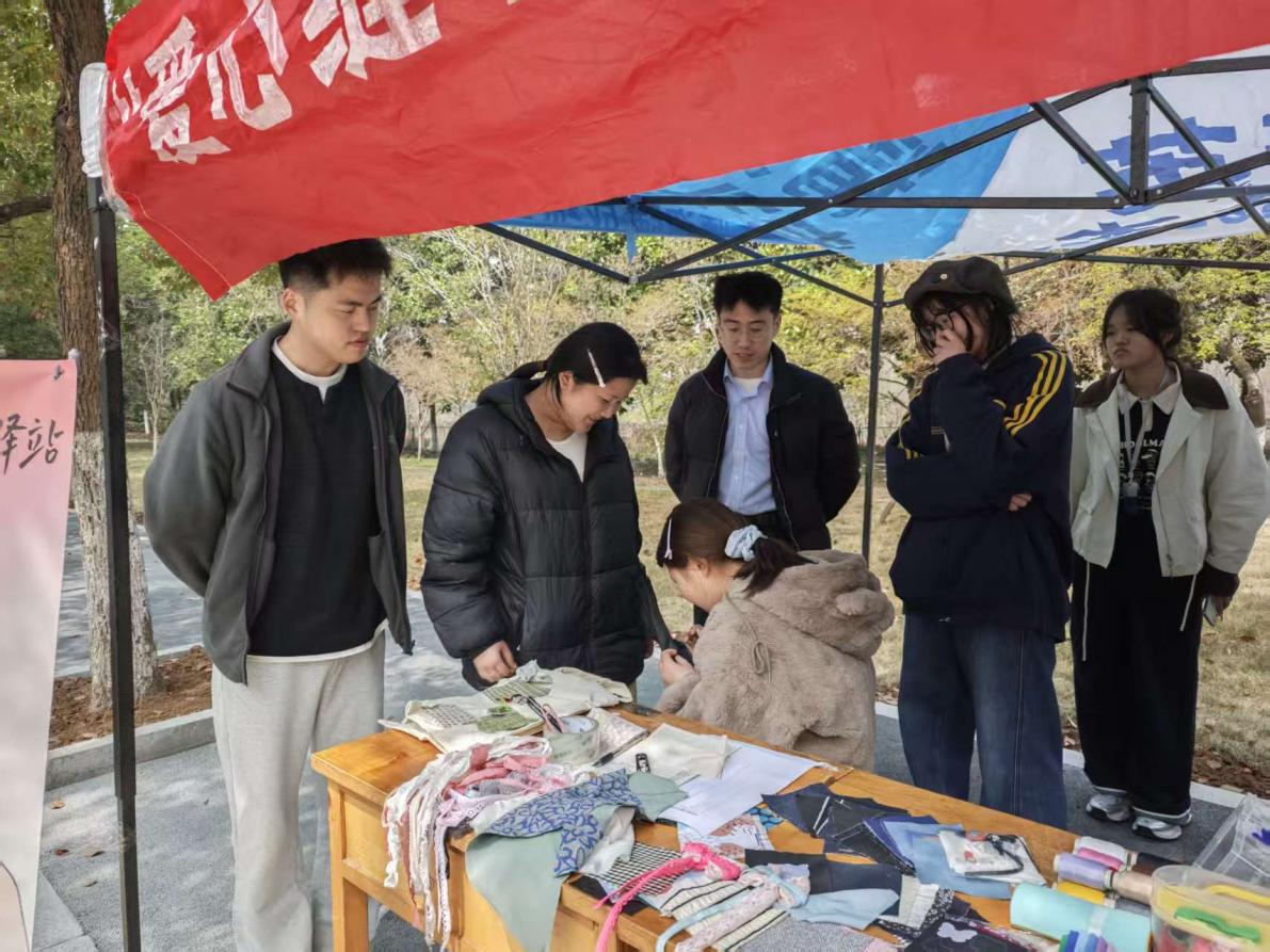 为弘扬勤俭节约传统美德,推动专业实践与公益服务相结合,3月25日至27日,艺术设计学院在食堂门口设立爱心摊位,开展为期三天的布艺爱心缝补活动。艺术设计学院团总支副书记贺梦龙、辅导员邹跃现场指导,带领学子以针线为媒,为师生免费修补衣物。